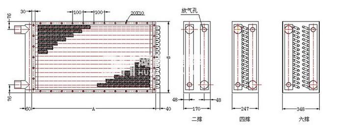 2、GLⅡ散熱器的散熱排管全叉排排列,并個單獨彎頭管連接;